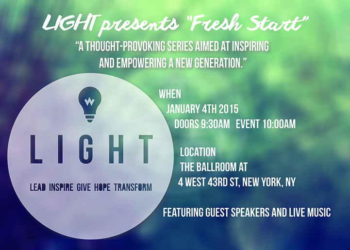 With the theme, “Fresh Start,” L.I.G.H.T. will ring in the new year, a time for people to set new goals and new resolutions for the upcoming year, with great music and three compelling talks.