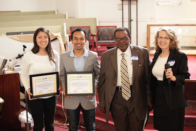 After their constructive sharing and hopeful message, Michael and Sarah Holmes both received Ambassador for Peace appointments along with Suh Mabo, a member of the LA Family Church Choir who is also always ready to volunteer and be of service to the community.