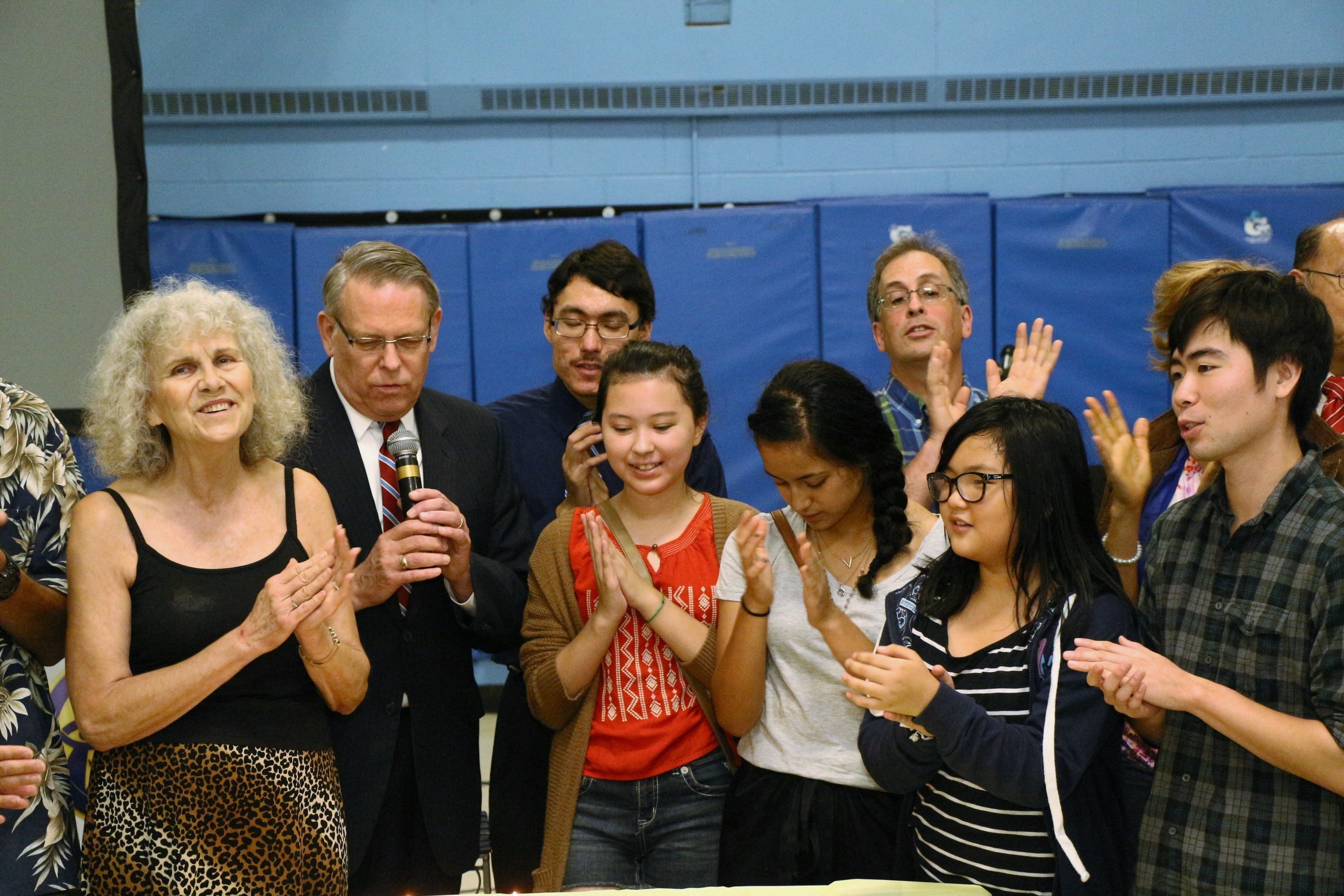 Newly appointed Illinois UPF-USA President, Mr. John Healy, gave a brief explanation of Parents’ Day and displayed the beautiful Parents’ Day Proclamation, signed by Bruce Rauner, the Governor of Illinois. Then, Midwestern UPF-USA Regional Director, Rev. Bruce Sutchar, shared about a few of Illinois’s past Parents’ Day winners, and then proceeded to invite every parent in the auditorium to join him on stage to receive their own personalized Parents of the Year certificate.