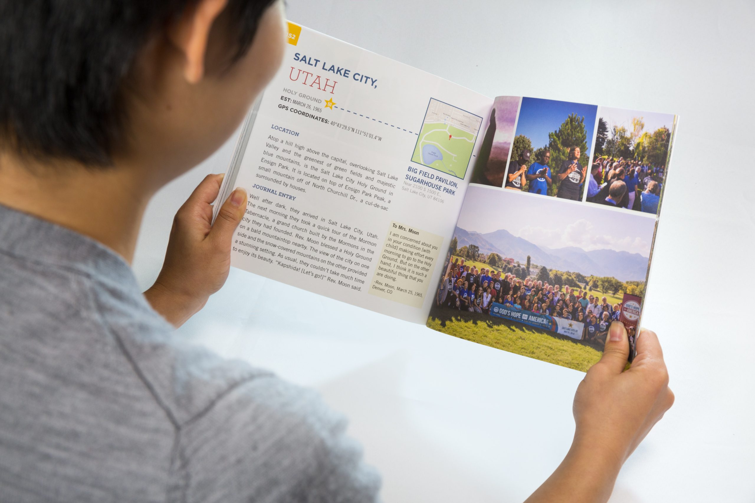 This Holy Ground Guidebook is a record of these tours. The book not only contains photographs and excerpts from the journal of Rev. Moon’s remarkable 48-day original tour, it includes notes written to his wife, Dr. Hak Ja Han Moon while on the road.
