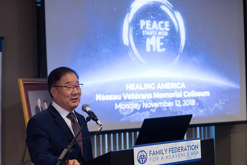 Regional Chairman of Family Federation North America, Dr. Ki Hoon Kim, shared stories from his time with True Mother over the last month. Dr. Kim told True Mother of the great victories in America from the Peace Starts With Me rally at Nassau Coliseum. “Due to our great efforts, Christianity has welcomed True Parents.” Every weekend prior to the rally, Unificationists and Japanese Missionaries visited Christian churches all over the tri-state area to encourage and inspire them to attend the rally and welcome True Mother back to America, and in the end, more than 350 churches attended the rally. Dr. Kim acknowledged True Mother’s genuine delight during her visit to America. Her beaming smile showed how proud she was for America to plan and execute the Peace Starts With Me rally. “True Mother feels the spirit and heart of America to fulfill True Parents’ mission and God’s Will.”